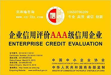 AAA企业信用评级是一个国家级的信用评级体系,是由国家商务部和国务院国资委授权国家一级行业协会,对全国中小企业开展商务信用能力和企业经营综合健康状况进行评价的活动。企业信用评级是企业履行商业合约和社会责任能力的反映,企业信用等级也是企业日常经营状况健康度的权威表达。它不仅成为企业与交易伙伴合作、赊销等决策的重要的参考依据,更为优质企业获得更多的融资、投标、政策争取等商业“绿色通道”。是企业信用价值的“身份证”、是企业提升品牌价值与品牌竞争力宝贵的无形资产。