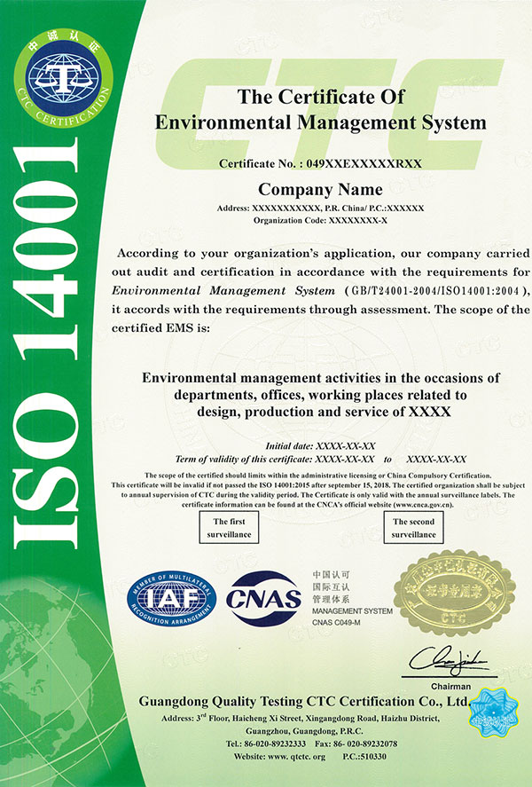 ISO14001环境管理体系认证