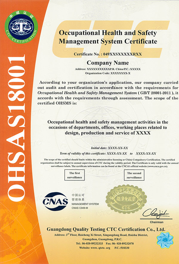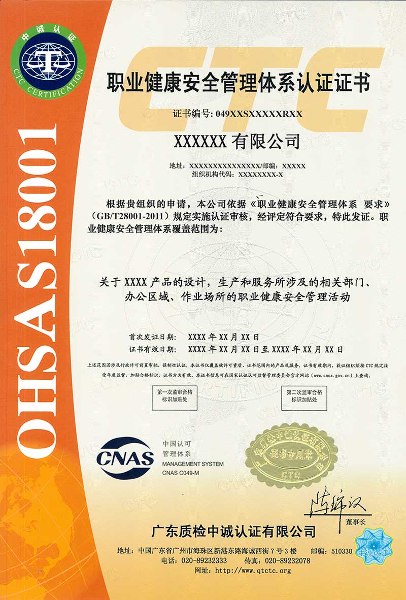 职业健康及安全管理体系(OHSAS18001)是一个适用于任何组织的职业健康及安全的管理体系标准。通过专业性的调查评估和相关法规要求的符合性鉴定,找出存在于企业的产品、服务、活动、工作环境中的危险源。建立包含组织结构、职责、培训、信息沟通、应急准备与响应等要素的管理体系,持续改进职业健康安全绩效。