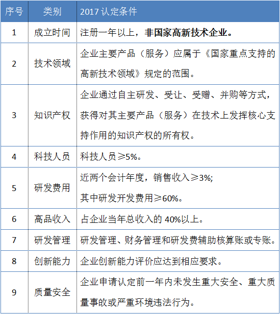 一、申报高企培育条件